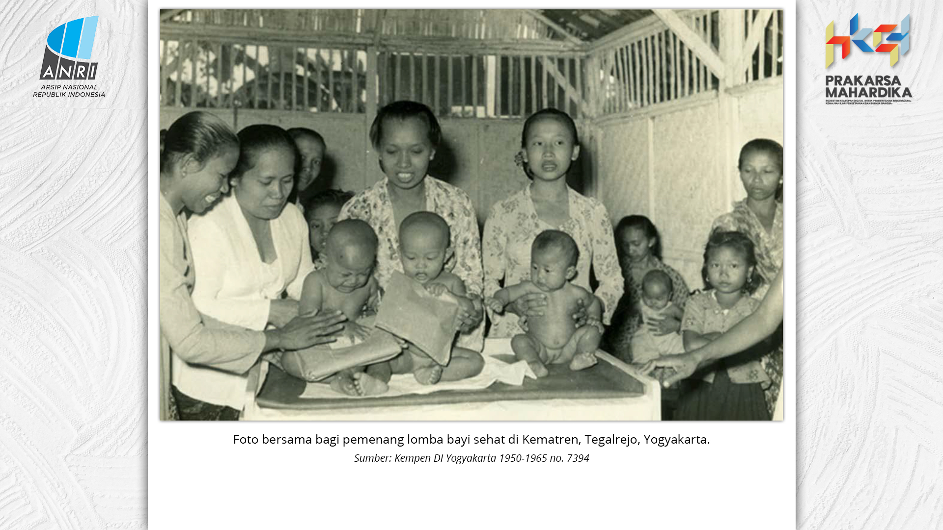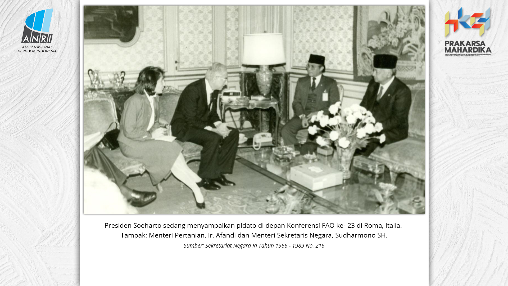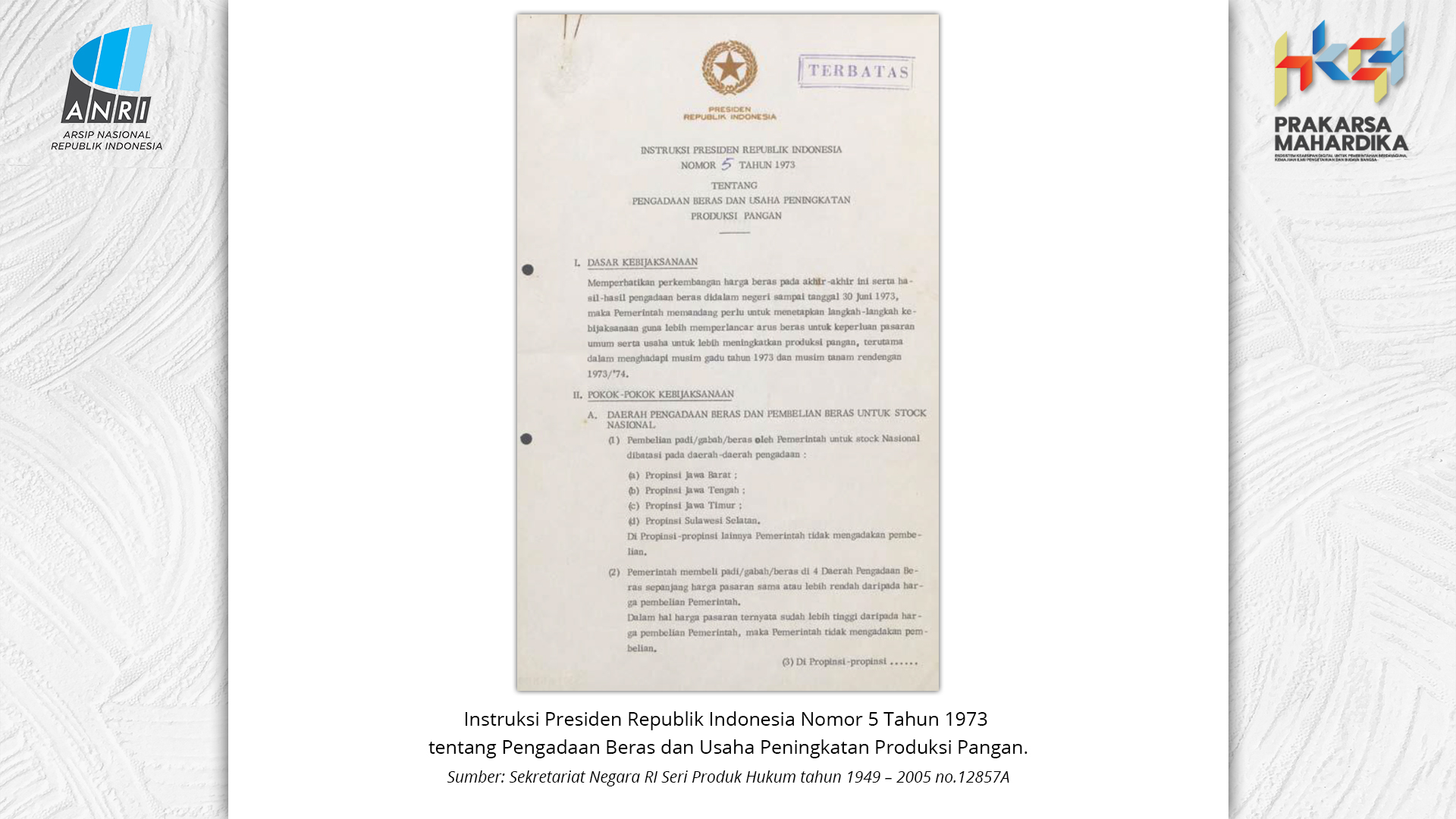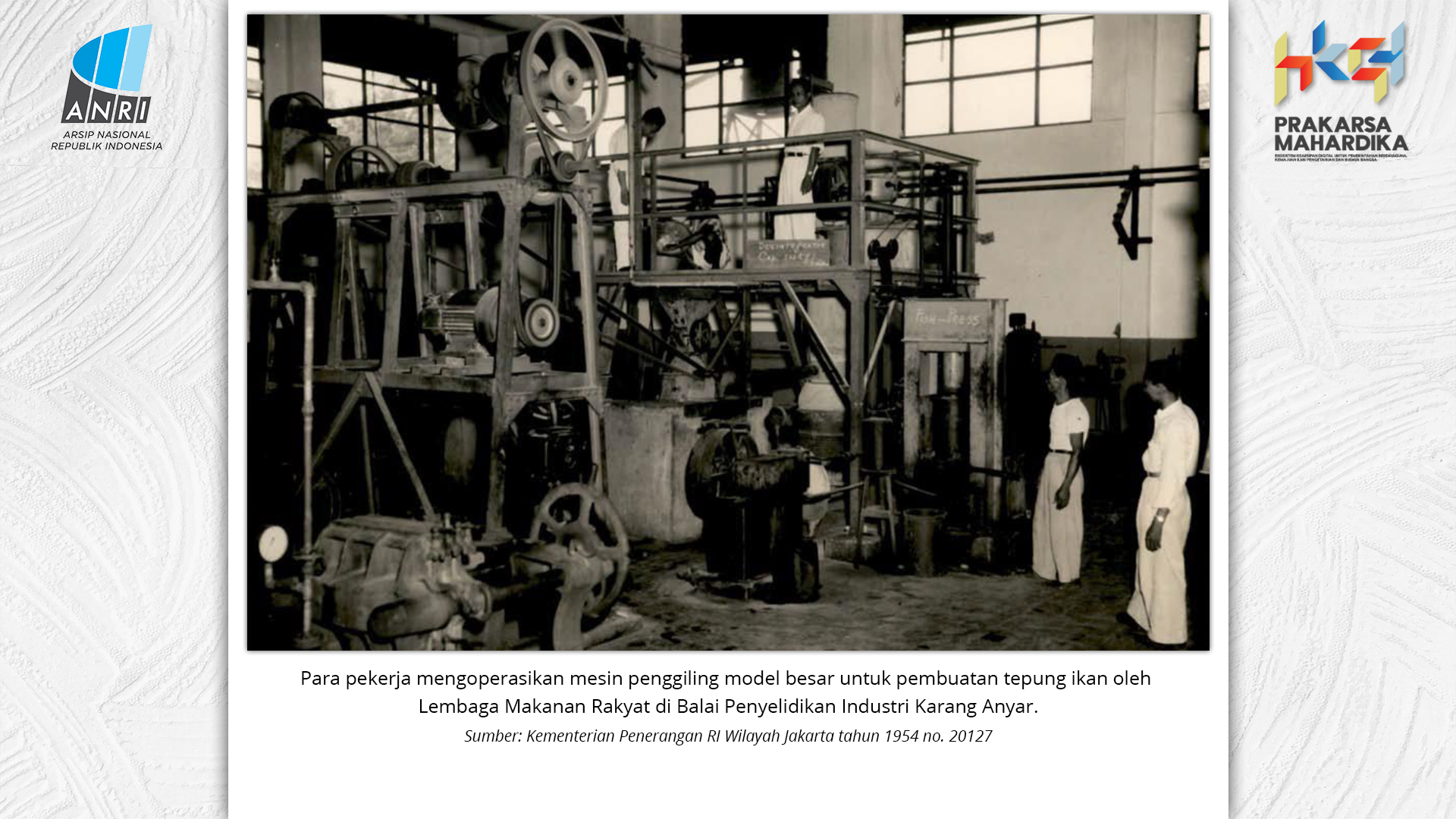 Perjalanan Sekolah Rakyat dimulai saat pemerintah Hindia Belanda membuka Sekolah Desa bagi anak-anak pribumi. Sekolah-sekolah ini tumbuh perlahan menjadi ruang yang menumbuhkan semangat belajar. Setelah kemerdekaan tahun 1945, Sekolah Rakyat bertransformasi menjadi bagian dari sistem pendidikan nasional. Meski nama dan sistemnya berubah, tetapi tetap mengemban peran penting dalam upaya mencerdaskan kehidupan bangsa. Namun, dalam perjuangan mencerdaskan bangsa, pemerintah dihadapkan dengan tingginya angka ketidakhadiran siswa akibat masalah gizi dan stunting. Dampaknya tidak hanya fisik, tetapi juga mengganggu kecerdasan dan produktivitas. Mereka lebih rentan sakit, mudah lelah, dan kesulitan berkonsentrasi, yang berujung pada ketidakhadiran bahkan putus sekolah. Stunting telah menjadi perhatian balk di tingkat nasional maupun global. Sejak masa kemerdekaan, Indonesia telah meluncurkan berbagai inisiatif untuk mengatasi masalah ini, serta peluncuran berbagai kebijakan strategis untuk menekan angka stunting di tanah air. Salah satunya melalui program Makan Bergizi Gratis. Pada masa Presiden Soeharto, perhatian ini ditegaskan kembali melalui Instruksi Presiden No. 1 Tahun 1997, yang meluncurkan Program Makanan Tambahan Anak Sekolah (PMS-AS) di daerah tertinggal sebagai bagian dari program besar Wajib Belajar Sembilan Tahun. Pada tahun 1984, Indonesia juga berhasil mencapai swasembada beras pada tahun 1984, bahkan mendapatkan pengakuan dari Food and Agriculture Organization (FAO). Semangat swasembada ini tetap menjadi landasan perjuangan menuju kedaulatan pangan, kesejahteraan bangsa, dan masa depan anak-anak Indonesia. Keempat program tersebut sejalan dengan visi Presiden Prabowo Subianto dan Wakil Presiden Gibran Rakabuming Raka dalam Kabinet Merah Putih yaitu "Bersama Maju Menuju Indonesia Emas 2045". Melalui arsip yang tersimpan di ANRI, dapat terlihat bagaimana keempat program tersebut menjadi perhatian dari masa ke masa. Pameran ini bukan sekedar menghadirkan potret masa lalu, tetapi juga menyuarakan harapan untuk membentuk wajah Indonesia yang sehat, cerdas, dan berdaya saing global sejalan dengan misi utama Asta Cita.